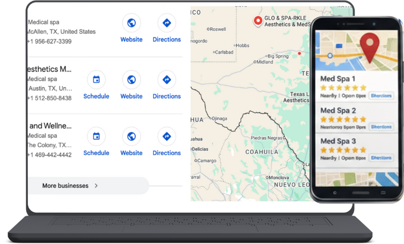We put your med spa in the Google Maps 3-Pack and bridge the gap between a search and a scheduled appointment. No technical jargon — just consistent bookings for your clinic.